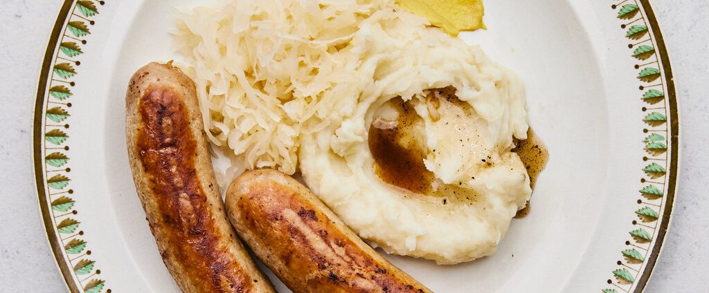 We will be serving brats, mashed potatoes, sauerkraut, and some veggie.